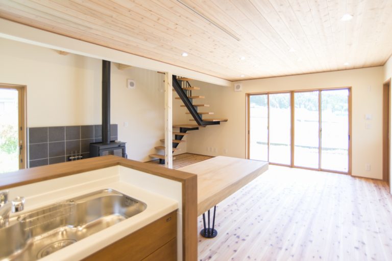 住宅施工事例平屋中庭の家薪ストーブの家